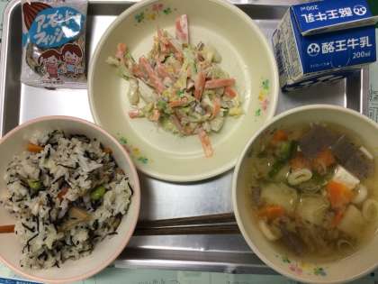 焼き豚入り味噌マヨネーズあえ!さつま汁、あったまりますね!