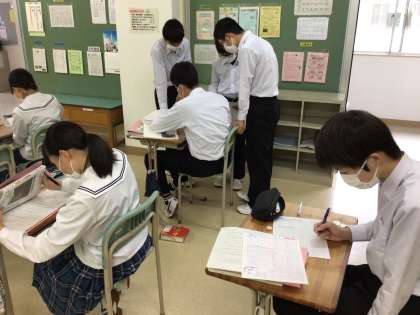 練習プリントの答え合わせ。納得できたかな?