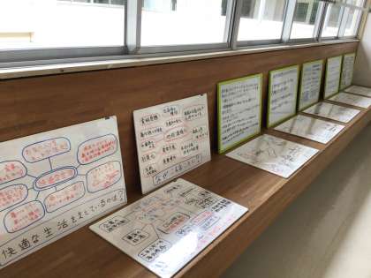 福島県民として放射線への正しい理解は不可欠です。お家の方と一緒に学べた意義は大きいですね!図書室前にイメージマップを展示!他の班の意見も参考に放射線についてこれからも考えていきましょう!