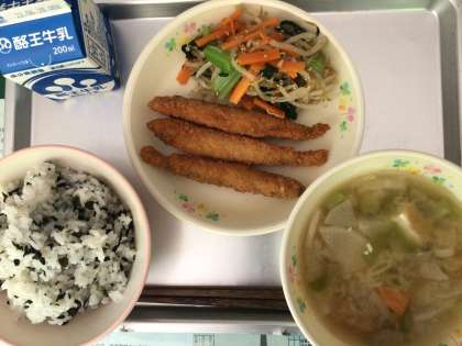 シシャモのフライ、わかめご飯!おひたしもおいしそうです!