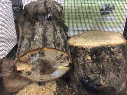 模様替え?木を勝手に動かしたようです。それにしてもすごい力ですね!もっと見たい人は校長室まで!トンネル作り?木に穴あけ作業中。