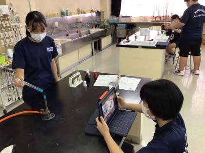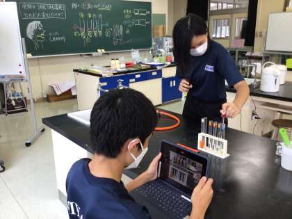 だ液の働きを実験中。色か変わるとどんなことが言えるのかな?