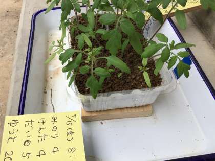 遺伝の特徴が出ています。葉の色、黄緑(みのり)と緑(けんた)子(だいちゃん)は全部緑。孫(ゆうと)の葉は?2枚目画像が孫です。どちらの色も出ていますね!