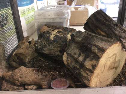 立ててた木は完全に横倒しに。正面と背面からの画像。見事に隠れていますね!