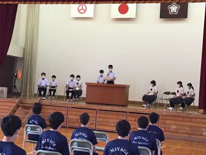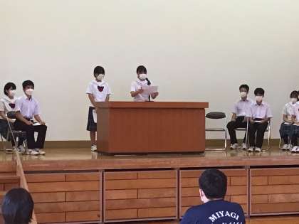 各立候補の応援演説が行われています。3年生の思いが伝わります。