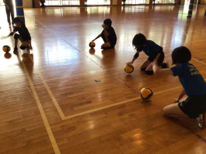 球にじゃれる猫?失礼な!ボールの芯をとらえる練習です!