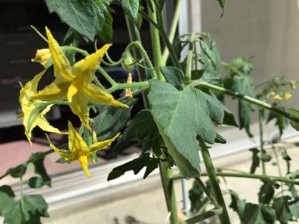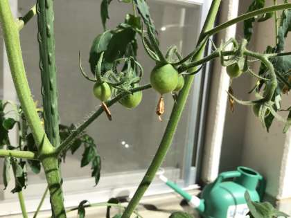 葉の色は緑。けんたトマトの色を引き継ぎました。実の色はどうかな?