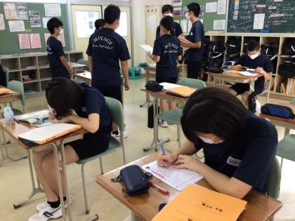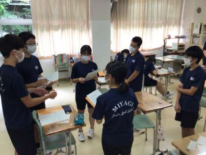 文化祭に向けて発表内容の確認。終わったグループはテスト反省!