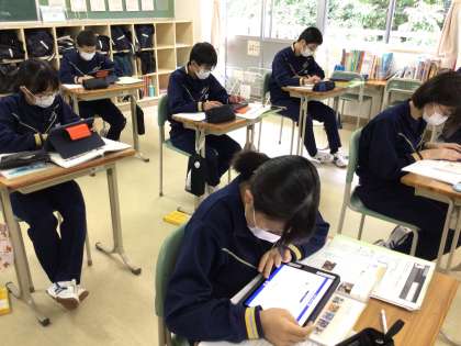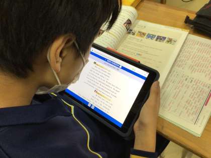 タブレットで英語の読みを確認。発音を聞き取って練習しよう!