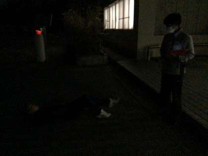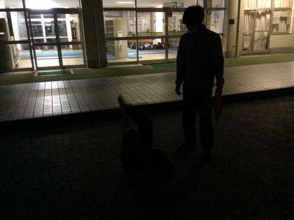 真っ暗ですが、筋トレ中!あっ!とかうぉっ!とか、聞こえてきます。