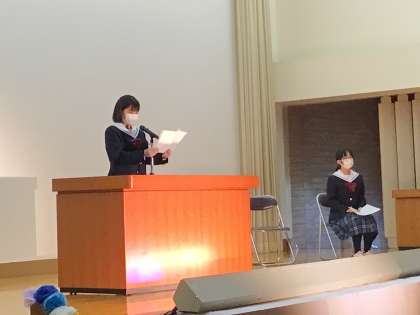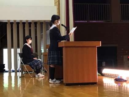 意見文発表です。地球温暖化にネットの誹謗中傷。社会の問題を中学生の感性がどう捉えたかな?
