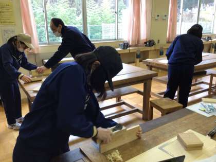 木材加工、カンナの使い方を練習中!外部講師の先生をお迎えして。