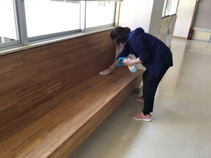隅々まで感染予防の消毒作業です。