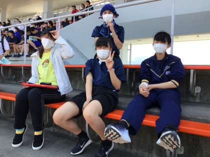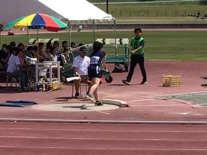 砲丸投げ試技。応援中。