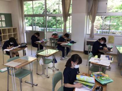 学習した範囲をワークで確認中。