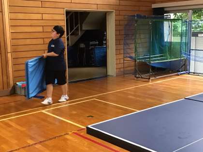 ハンドベルと駅伝メンバーが合流するまで,1人で準備!みんな揃ったらすぐできるよう,ありがとう!