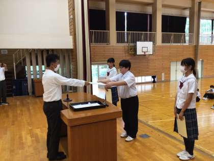 陸上大会、市英語弁論大会の表彰です。