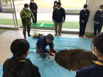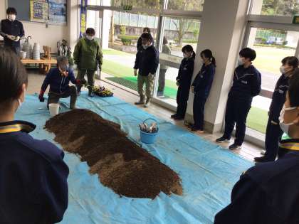 海老根和紙保存会より植え付け作業のご指導をいただきます。