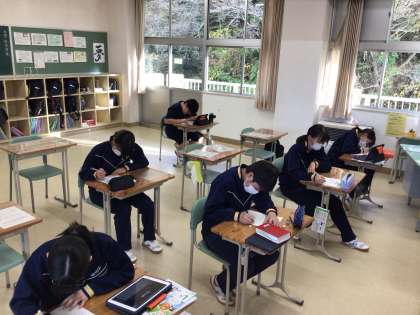 定期テストの反省と作文を書いています。