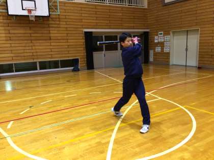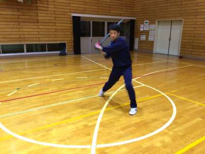 屋外で壁キャッチボール。体育館に移動して屋内ノック。仕上げは素振り!