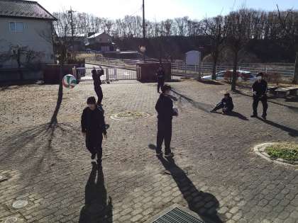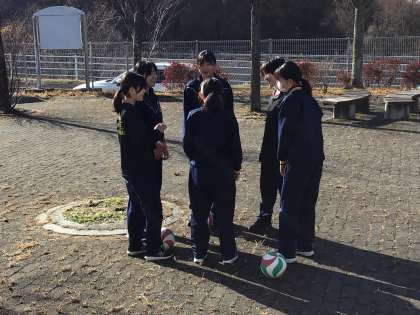 緑ヶ丘中、試合会場にて。これから第二試合です。選手打ち合わせ中。