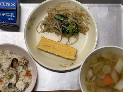 鳥五目ご飯。冬野菜の味噌汁美味しそうです。