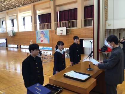 卒業記念品、生徒会功労、少年の主張表彰です。
