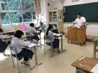 保健体育は、体育館で前方倒立回転跳びの学習をしました。それぞれのステップで楽しみながら練習しました。