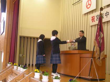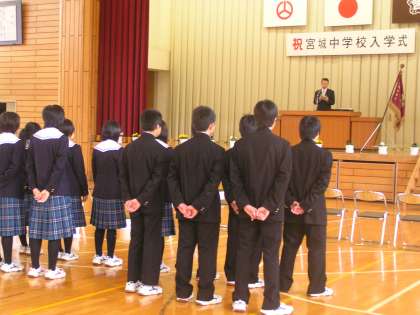 始業式の中で、一ヶ月前に発生した東日本大震災でお亡くなりになれた方々のご冥福をお祈りし、全員で黙祷を捧げました。