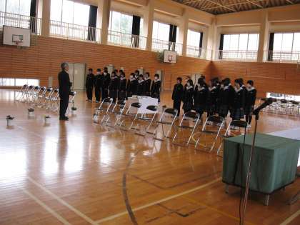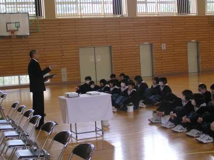 始業式後、「放射線対策」や「余震への対応」について、子どもたちに指導しました