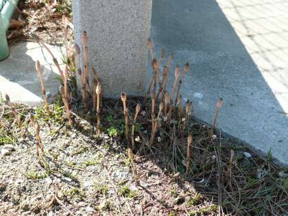 学校の周辺は、「つくしんぼ、つくしんぼう」(土筆ん坊)でいっぱいです。