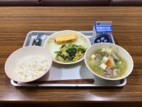 今日の給食のメニュは、「ポトフ、ツナサラダ、米粉パン、りんご、牛乳です」今日の米粉(こめこ)パンは、小麦粉と米粉(こめこ)をまぜて作っているので、食べた感じがいつもと違うと思います。米粉(こめこ)は、字のとおりお米を粉(こな)にしたもので、だんごやせんべいなどの材料になります。最近は米粉(こめこ)を使った洋菓子も作られるようになりました。また、ポトフはフランスの家庭料理で、言い方は「ポ・ト・フー」で「火にかかったなべ」という意味です。いろいろな野菜や肉のうまみがしみ出て何ともいえない味わいがあると思います。