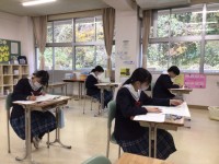 数学では、図形の学習をしました。平行線から角度を求める問題の解き方について、たくさんの方法を考えました。