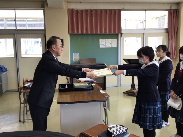 校内数学・英単語コンクール、郡山市・福島県書きぞめ展、郡山市少年の主張の表彰です。