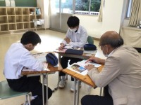 「アイディアノート」の表紙づくりをしています。美術の授業だけでなく、普段の生活をしている中で、“心を動かされた場面やデザイン”を記録するもので、メモしたり、絵をかいたり、写真を貼ったりするノートで、それをこれからの制作に生かします。あの時とても印象に残ったのに思い出せない、それを防ぐためのアイディアの備忘録ですね。