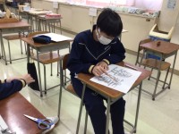 文字絵をデザインしていこう。自分のイメージを先生のアドバイスとあわせて表現してい...