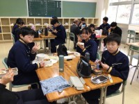みんな楽しくお弁当をたべています。各班、楽しい会話で盛り上がっています。お弁当に...
