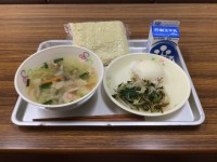 今日のメニューは、みそタンメン、ポークシュウマイ、もやしのラー油あえ、牛乳です。