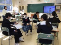 今日の音楽は、全学年合同授業で式歌の練習です。「仰げば尊し」は卒業生が歌います...