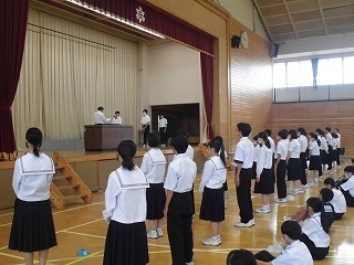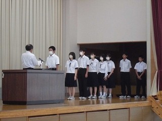 10月1日、令和7年度後半のスタートである今日、後期生徒会役員・専門委員会委員長・学級役員の任命式を行いました。