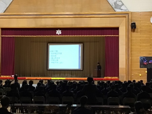 少年の主張・長崎派遣の発表では、自分の考え、学んだことをわかりやすくまとめ、全校生に伝えていました。
