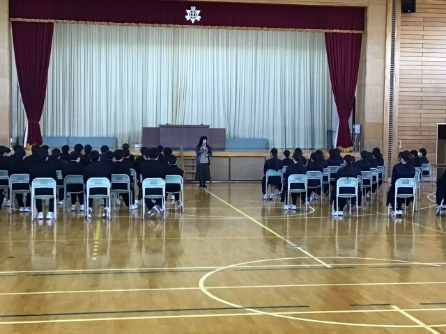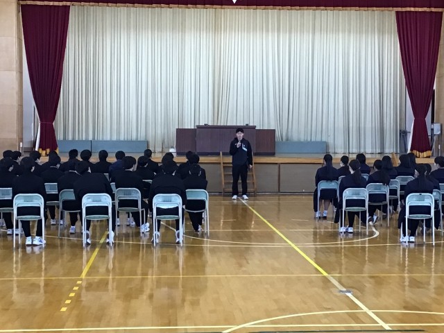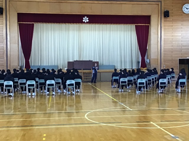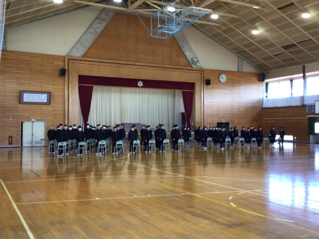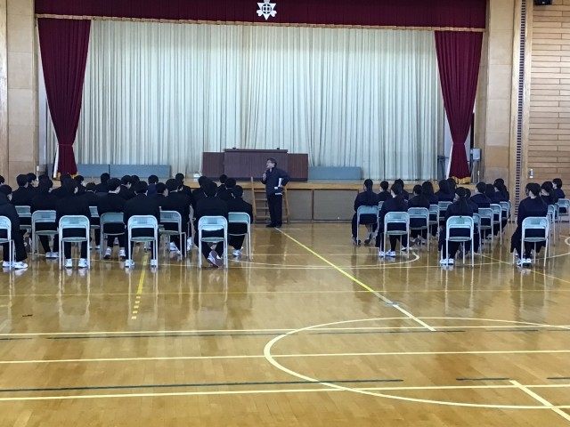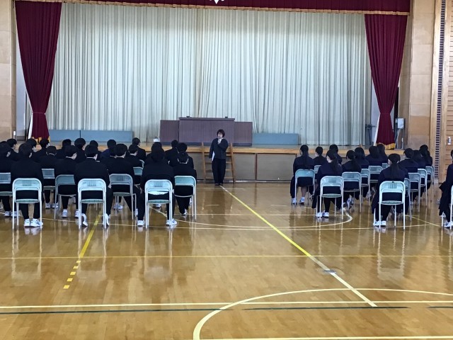 その後、最後の学年集会が行われました。3年生の先生方からのメッセージを真剣に聞く姿は、とても立派でした。この後は、各学級での分散会が行われます。