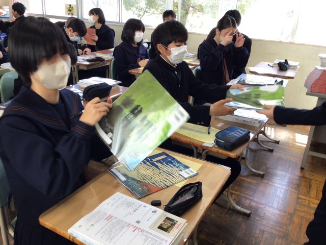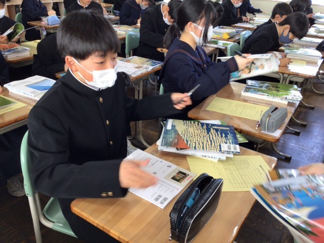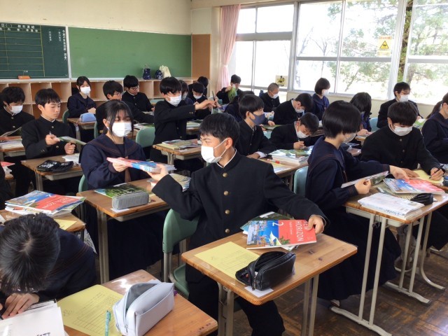 本日新学年で使用する教科書を配付しました。3年間継続して使用する教科書もあるので、新たに配付した教科書は合計9冊になります。新しい教科書を手にして学習に対する思いを一層深めたようです。