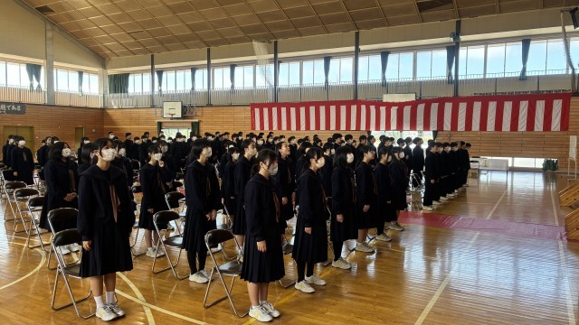 本日新たに7名の先生をお迎えして新年度がスタートします。着任式前に2・3年生で校歌の練習をしました。旧1学年の学級で行なう最後の歌になります。みんな精一杯大きな声で歌っていました。