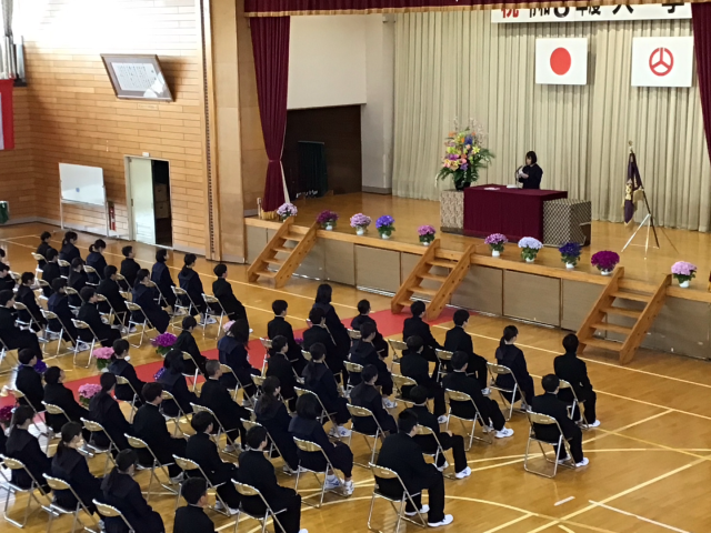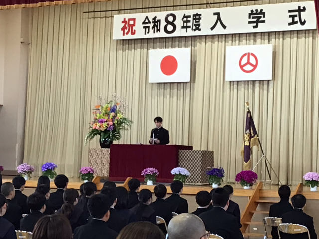 4月6日の午後は令和8年度の入学式がありました。今年度は74名が日和田中学校に入学しました。校長式辞では13歳という年齢は大人の世界への入口であり、かつ自由と可能性をもっていること、ゆえに中学校生活の3年間は将来を支える基盤として大切であることを話しました。その後在校生代表で3年生から歓迎の言葉を、新入生代表の誓いの言葉がありました。1年生は中学校生活の早く慣れて、ゆえに2,3年生はぜひ1年生に優しく接してほしいです。
