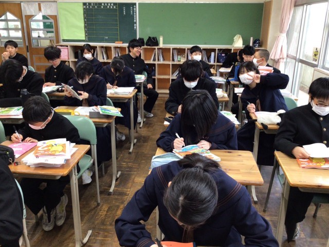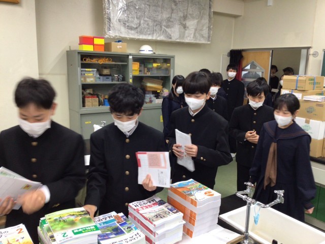本日副教材を配付しました。新年度がスタートし、慌ただしい中、代金の準備をしていただきありがとうございました。嬉しいことに欠席した生徒を除く全員が忘れずに持参することができました。教室ではしっかり新学級での出席番号を記入していました。