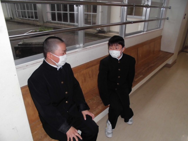 あいにく外は雨模様ですが、室内では休み時間を利用して廊下で談笑している生徒がみられました。和やかな空気の中落ち着いて生活することができています。