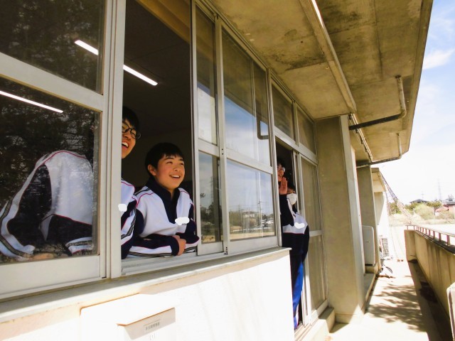昼休みに校庭ではサッカーをしたりテニスをしたりして過ごす生徒がみられます。昨年度も教室で何気なく眺めている生徒がいましたが、今年度は1階に教室の場所が移ったので、より間近に見ることができて新鮮な気分になるそうです。一つ一つのプレーを時には歓声を上げながら見守っていました。