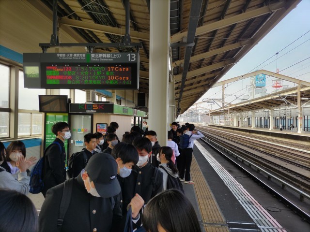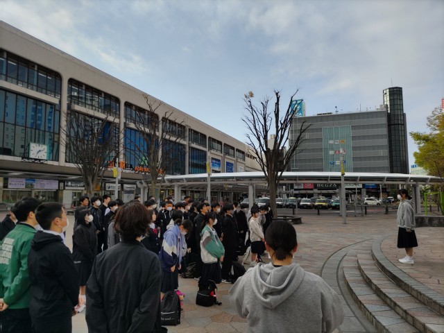 修学旅行の1日目。全員元気に笑顔で集合し、出発式のあと、定刻通り郡山駅を出発しました。
