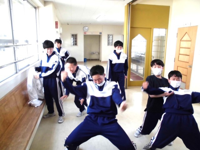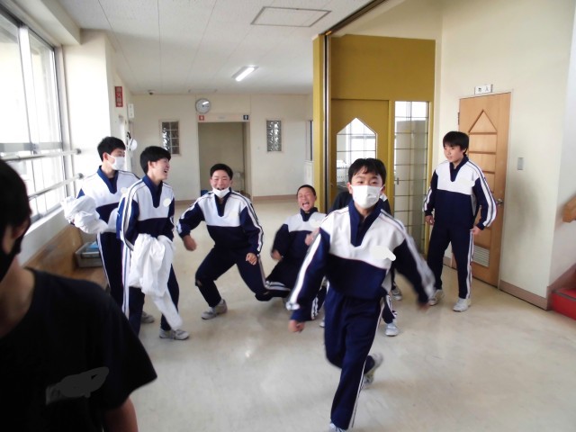 昨日の4校時が終了して廊下を歩いていたら、2組の男子生徒がなにやら元気いっぱいに近づいてきました。給食前ということもあって?みんなテンションが高く、華麗なパフォーマンスを見せてくれました。この勢いでこれからの行事でも学年の中心的存在として活躍してほしいですね。